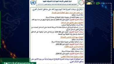 أصدر مركز الأرصاد الجوية في نشرته الجوية للأيام الثلاثة القادمة، متوقعاً ارتفاعاً ملحوظاً في درجات الحرارة اليوم الخميس وغداً…