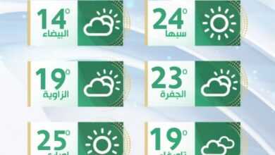 أعلن مركز الأرصاد الجوية، انخفاضا في درجات الحرارة على مناطق الشمال الغربي خاصة المناطق الساحلية. وقال المركز، إن درجات الحرارة…