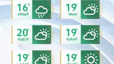 يسود طقس معتدل على أغلب مناطق البلاد مع احتمال ظهور ضباب على بعض مناطق الشمال الشرقي دون سقوط أمطار درجات…