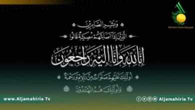 قناة الجماهيرية تتقدم بالعزاء للواء المُهجر عمر عبدالله الراقوبي في وفاة شقيقته