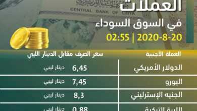 أسعار العملات الأجنبية مقابل الدينار الليبي اليوم الخميس 20 /8/ 2020 بالسوق الموازي