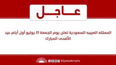 عاجل // المملكه العربيه السعودية تعلن يوم الجمعة 31 يوليو أول أيام عيد الأضحى المبارك
