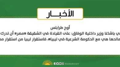 أوج طرابلس فتحي باشاغا وزير داخلية الوفاق: على القيادة في الشقيقة مصر أن تدرك بأن مصالحها هي مع الحكومة الشرعية…