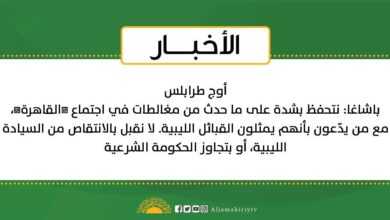 أوج طرابلس باشاغا: نتحفظ بشدة على ما حدث من مغالطات في اجتماع القاهرة، مع من يدّعون بأنهم يمثلون القبائل الليبية.…