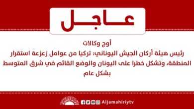 أوج وكالات رئيس هيئة أركان الجيش اليوناني: تركيا من عوامل زعزعة استقرار المنطقة، وتشكل خطرا على اليونان والوضع القائم في…