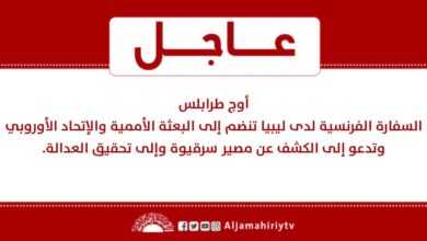 أوج طرابلس السفارة الفرنسية لدى ليبيا تنضم إلى البعثة الأممية والإتحاد الأوروبي وتدعو إلى الكشف عن مصير سرقيوة وإلى تحقيق…
