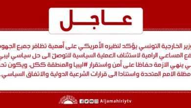 عاجل // وزير الخارجية التونسي يؤكد لنظيره الأمريكي على أهمية تظافر جميع الجهود لدفع المساعي الرامية لاستئناف العملية السياسية للتوصلّ الى حل سياسي ليبي- ليبي ينهي الازمة حفاظا على أمن واستقرار #ليبيا والمنطقة ككل، ويكون تحت مظلة الامم المتحدة واستنادا الى قرارات الشرعية الدولية والاتفاق السياسي.