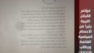 تبرأ مؤتمر القبائل والمدن الليبية، من كل الأجسام السياسية القائمة، معلنا رفضه لها ولكل الوجوه التي لم تعمل إلا على…