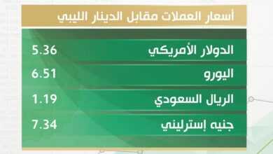 سجلت أسعار صرف العملات الأجنبية والعربية والذهب والفضة والصكوك وبطاقات ارباب الاسر مقابل الدينار الليبي في تعاملات السوق الموازي…