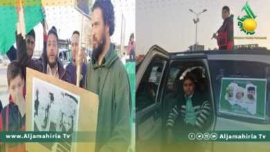 أهالي بني وليد يحيون ذكرى إجلاء القواعد الإنجليزية رافعين صور الدكتور سيف الإسلام