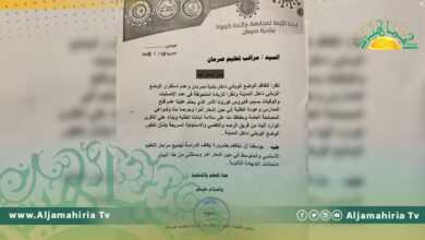 أصدر المجلس التسييري الجفرة قرارا بإيقاف الدراسة بجميع المراحل التعليمية بالبلدية وكافة المناشد الثقافية والدورات وصلاة الجمعة. وتضمن قرار…