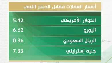 سجلت أسعار صرف العملات الأجنبية والعربية والذهب والفضة والصكوك وبطاقات ارباب الاسر مقابل الدينار الليبي في تعاملات السوق الموازي اليوم…