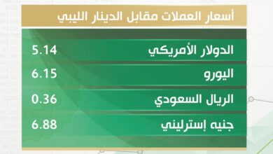 سجلت أسعار صرف العملات الأجنبية والعربية والذهب والفضة والصكوك، مقابل الدينار الليبي في تعاملات السوق الموازي اليوم الخميس 14 يناير…