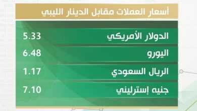 أسعار صرف الدولار والعملات الأجنبية مقابل الدينار الليبي اليوم السبت