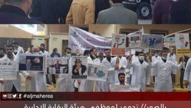 بالصور// تجمهر لموظفي هيئة الرقابة الإدارية ومركزالرقابة على الأدوية والأغذية ومطالبات بإقالة أسامة الشنطي وسرعة صرف المرتبات من أمام مبنى…