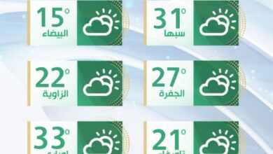 أعلن مركز الأرصاد الجوية، انخفاضا في درجات الحرارة على مناطق الشمال الغربي خاصة المناطق الساحلية. وقال المركز، إن درجات الحرارة…