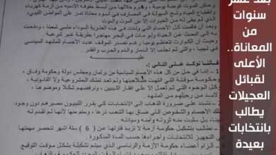 أكد المجلس الأعلى لقبائل العجيلات، على ضرورة الذهاب لانتخابات لكي يقرر الليبيون مصيرهم دون وجود الأجسام والشخوص التي ضاق…
