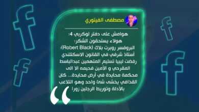 يواصل الكاتب الصحفي مصطفى الفيتوري سلسلة تدويناته حول قضية لوكيربي، وتحدث اليوم عن إحدى الشخصيات التي وصفها بأنها تستحق الشكر.…