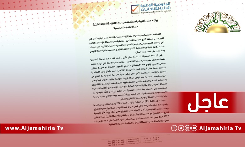 عاجل// المفوضية: نقترح يوم الاقتراع للجولة الأولى 24 يناير على أن يتولى “النواب” اتخاذ الإجراءات الكفيلة بإزالة حالة القوة القاهرة…