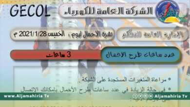 ساعات طرح الأحمال تتراوح ما بين ساعتين وثلاث ساعات في مختلف مناطق ليبيا