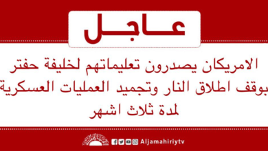 عاجل // الامريكان يصدرون تعليماتهم لخليفة حفتر بوقف اطلاق النار وتجميد العمليات العسكرية لمدة ثلاث اشهر #قناة_الجماهيرية_العظمى_قناة_كل_الجماهير