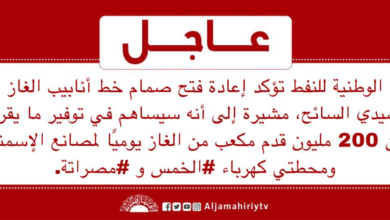 عاجل // الوطنية للنفط تؤكد إعادة فتح صمام خط أنابيب الغاز بسيدي السائح، مشيرة إلى أنه سيساهم في توفير ما…