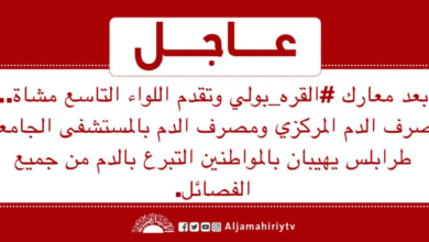 عاجل // بعد معارك #القره_بولي وتقدم اللواء التاسع مشاة.. مصرف الدم المركزي ومصرف الدم بالمستشفى الجامعي طرابلس يهيبان بالمواطنين التبرع بالدم من جميع الفصائل #قناة_الجماهيرية_العظمى_قناة_كل_الجماهير