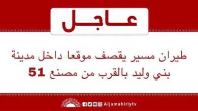 عاجل // طيران مسير يقصف موقعا داخل مدينة #بني_وليد بالقرب من مصنع 51 #قناة_الجماهيرية_العظمي_قناة_كل_الجماهير