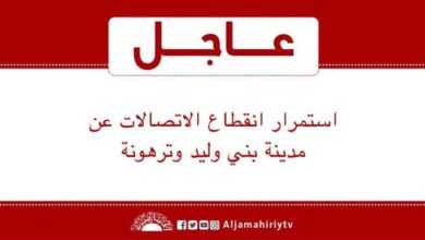 عاجل // استمرار انقطاع الاتصالات عن مدينة بني وليد و #ترهونة. #قناة_الجماهيرية_العظمي_قناة_كل_الجماهير