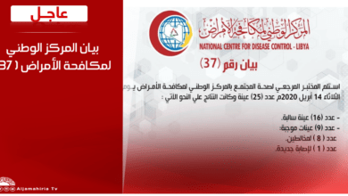 عاجل | بيان المركز الوطني لمكافحة الأمراض ( 37 ) #قناة_الجماهيرية_العظمي_قناة_كل_الجماهير