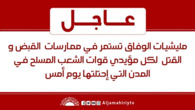 عاجل // مليشيات الوفاق تستمر في ممارسات القبض و القتل لكل مؤيدي قوات الشعب المسلح في المدن التي إحتلتها يوم أمس #قناة_الجماهيرية_العظمي_قناة_كل_الجماهير