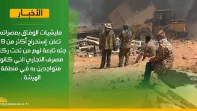 مليشيات الوفاق بمصراته تعلن إستخراج أكثر من 13 جثه تابعة لهم من تحت ركام مصرف التجاري التي كانوا متواجدين به…