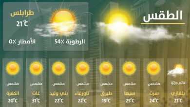 درجات الحرارة تميل للاعتدال على أغلب مناطق ليبيا ومن المتوقع مساء يوم الغد حدوت تقلبات جوية نتيجة تأثير منخفض جوي…