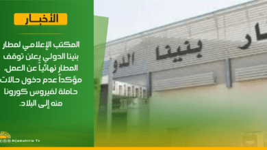 عاجل | المكتب الإعلامي لمطار بنينا الدولي : يعلن توقف المطار نهائياً عن العمل، مؤكداً عدم دخول حالات حاملة لفيروس #كورونا منه إلى البلاد. #ليبيا #قناة_الجماهيرية_العظمى