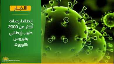 إيطاليا إصابة أكثر من 2000 طبيب إيطالي بفيروس كورونا.