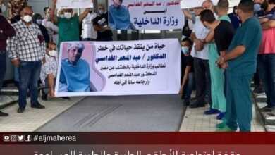 وقفة احتجاجية للأطقم الطبية والطبية المساعدة بمستشفى الخضراء مُطالبين بالكشف عن مصير الدكتور عبدالمنعم الغدامسي المُختطف بالقرب من منزله مند…