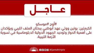بحث الرئيس الروسي، فلاديمير بوتي، القضية الليبية خلال اتصال هاتفي مع ولي عهد أبو ظبي، نائب القائد الأعلى للقوات المسلحة…