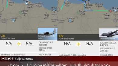 رصد موقع الرادارات الايطالي عند الساعة 6:20 من صباح السبت وصول طائرة شحن عسكرية برمز 222 من طراز لوكهيد C130 تابعة لسلاح الجو التركي قادمة من قاعدة قيصري في قونيا التركية متجهة إلي غرب ليبيا. كما رصد طائرة شحن عسكرية اخرى تحمل ترميز 223 من طراز اوكهيد C130 تابعة لسلاح الجو التركي اقلعت من الوطية اليوم