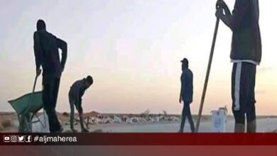 في غياب الحكومة.. متطوعون يزيلون كثبان الرمال عن أحد الطرق